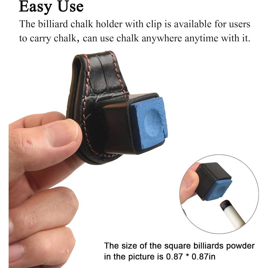 - Attaching it to your pocket is super easy. Now, your chalk is always within reach, whether you’re at the pool table or on the go.