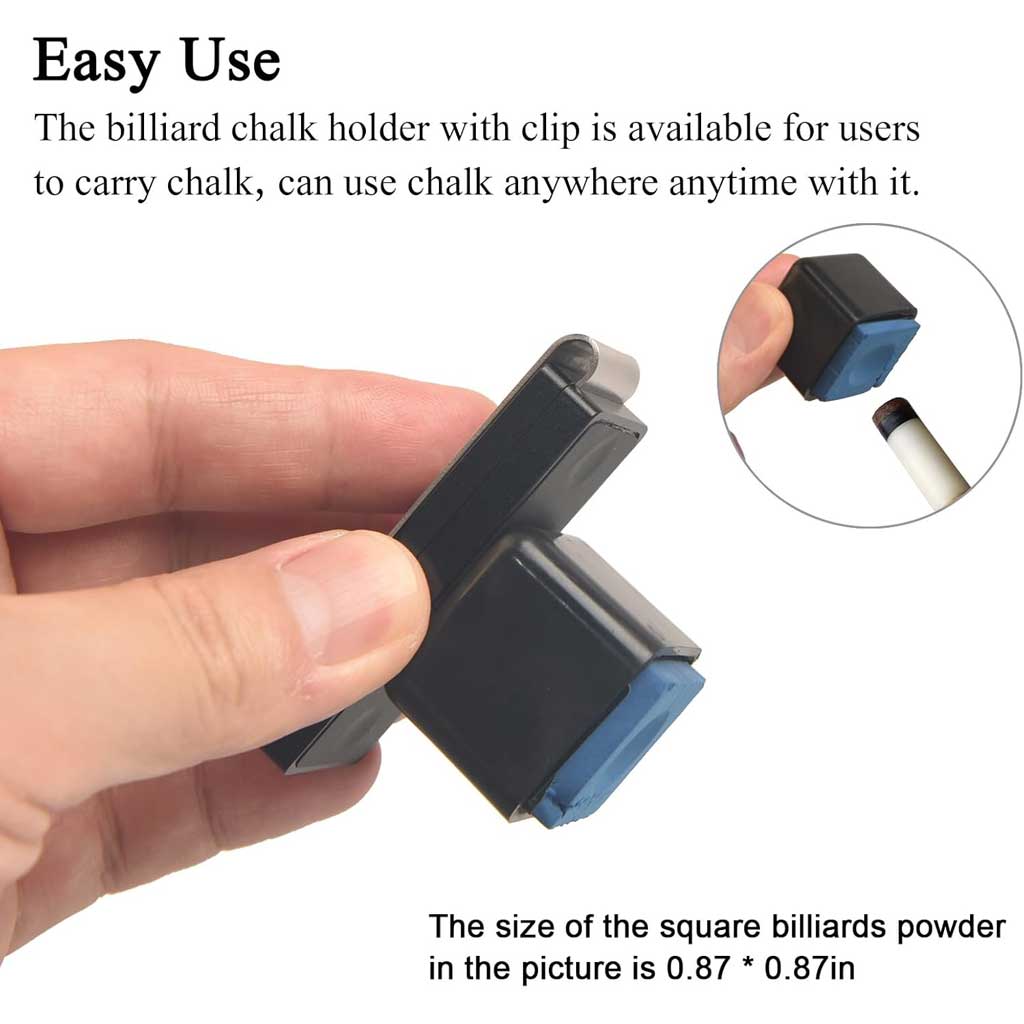 - Clip Design: Attaching the pool chalk holder to your belt or pocket is easy with our magnetic belt clip and chalk holder. Keep your chalk handy wherever you go.